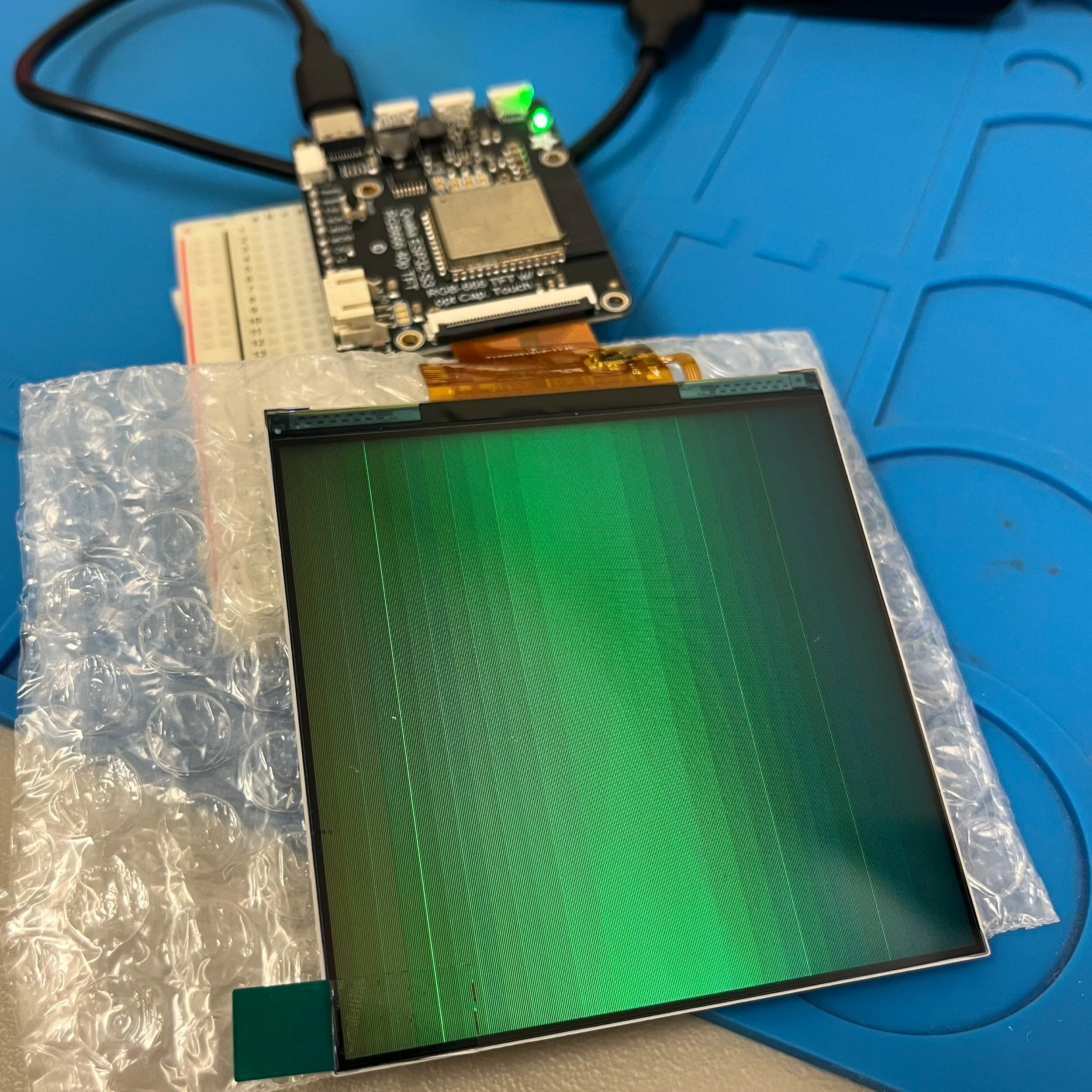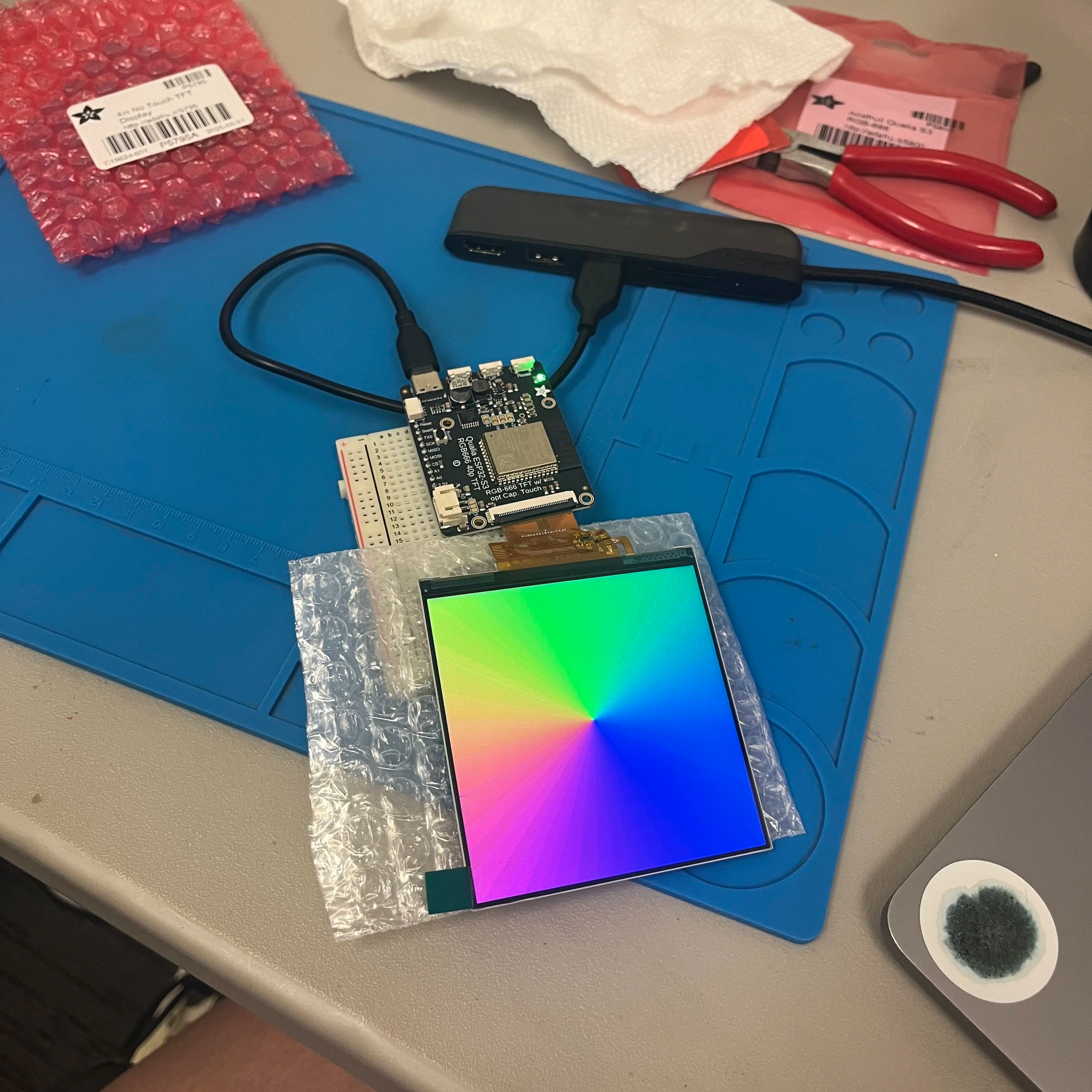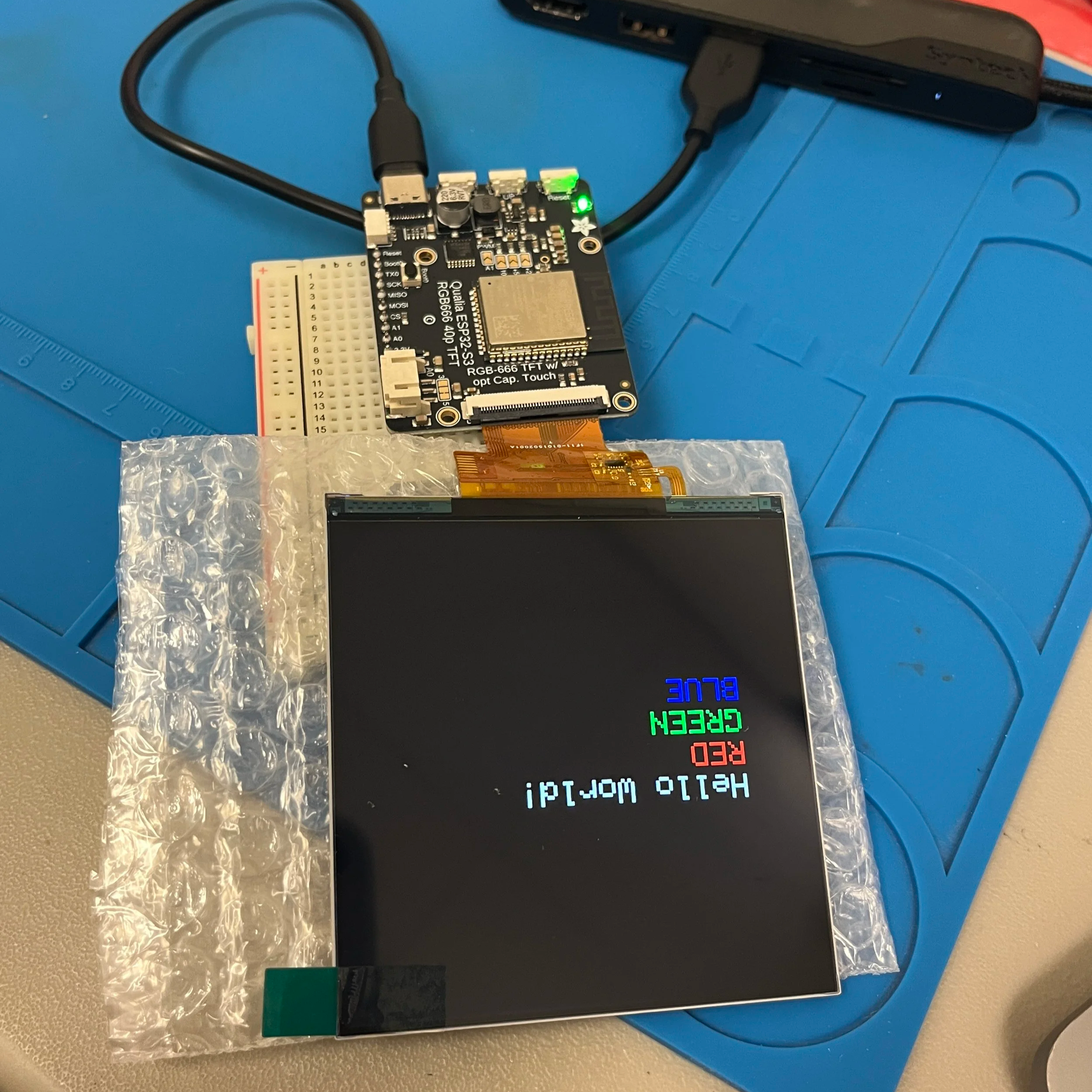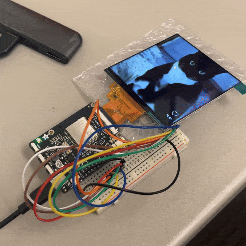Okay, once again scouring the Adafruit site, I found this: Qualia ESP32-S3 for TTL RGB-666 Displays. This was destined to work because I also found this great tutorial for setting up a video player and the supported screens were of a good size. I bought myself the Qualia board and this square screen and got to building.