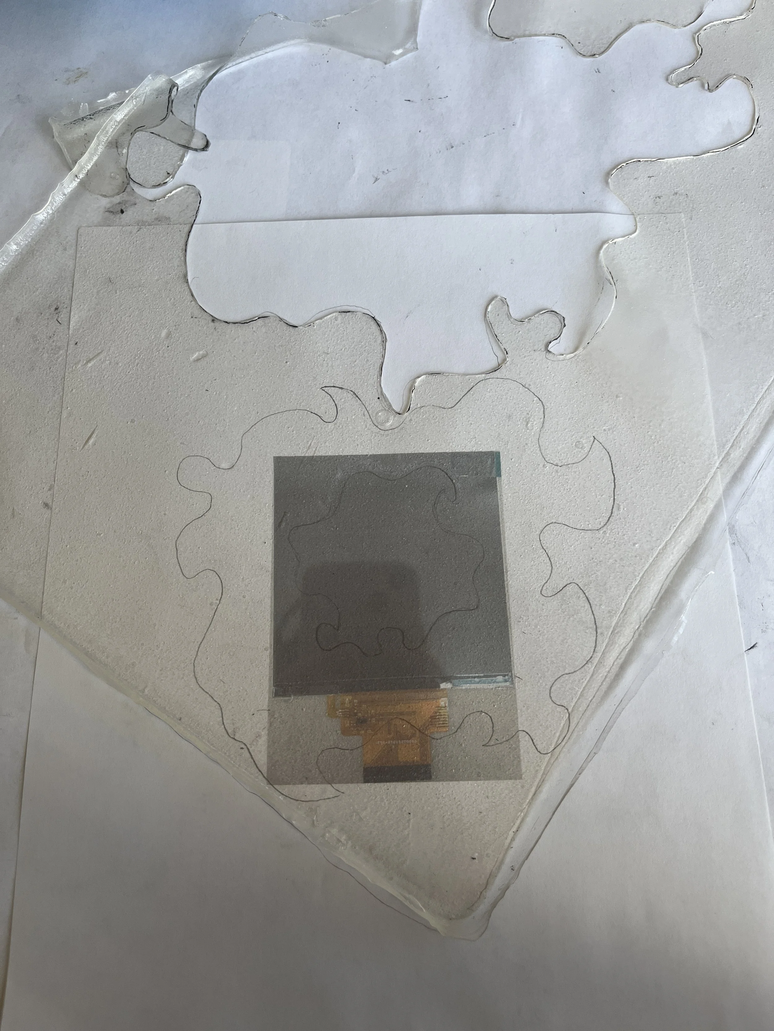 I started out this project wanting to use a novel looking screen. I had come across some see through OLED screen projects, so I thought that would work well for this as bioplastic is also see through.