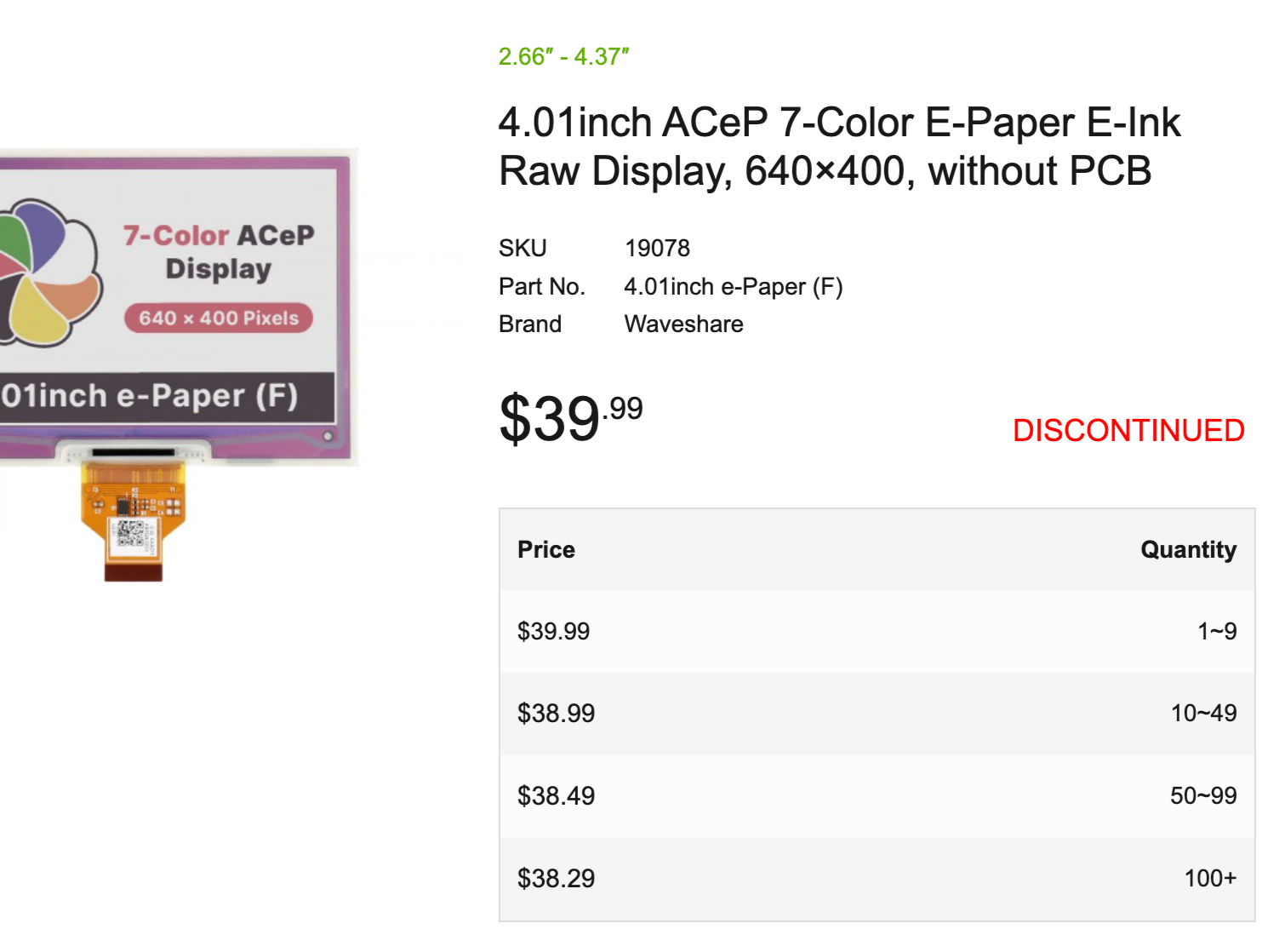 Once I got my color screen, it didn’t work with the Arduino library. I asked on the Adafruit forum and the response was that the library doesn’t actually support these 7 color displays anymore and that I should look to the display manufacturer’s documentation. This was also a Waveshare display and found that this product had been discontinued!! So it became apparent that this wouldn’t work either…