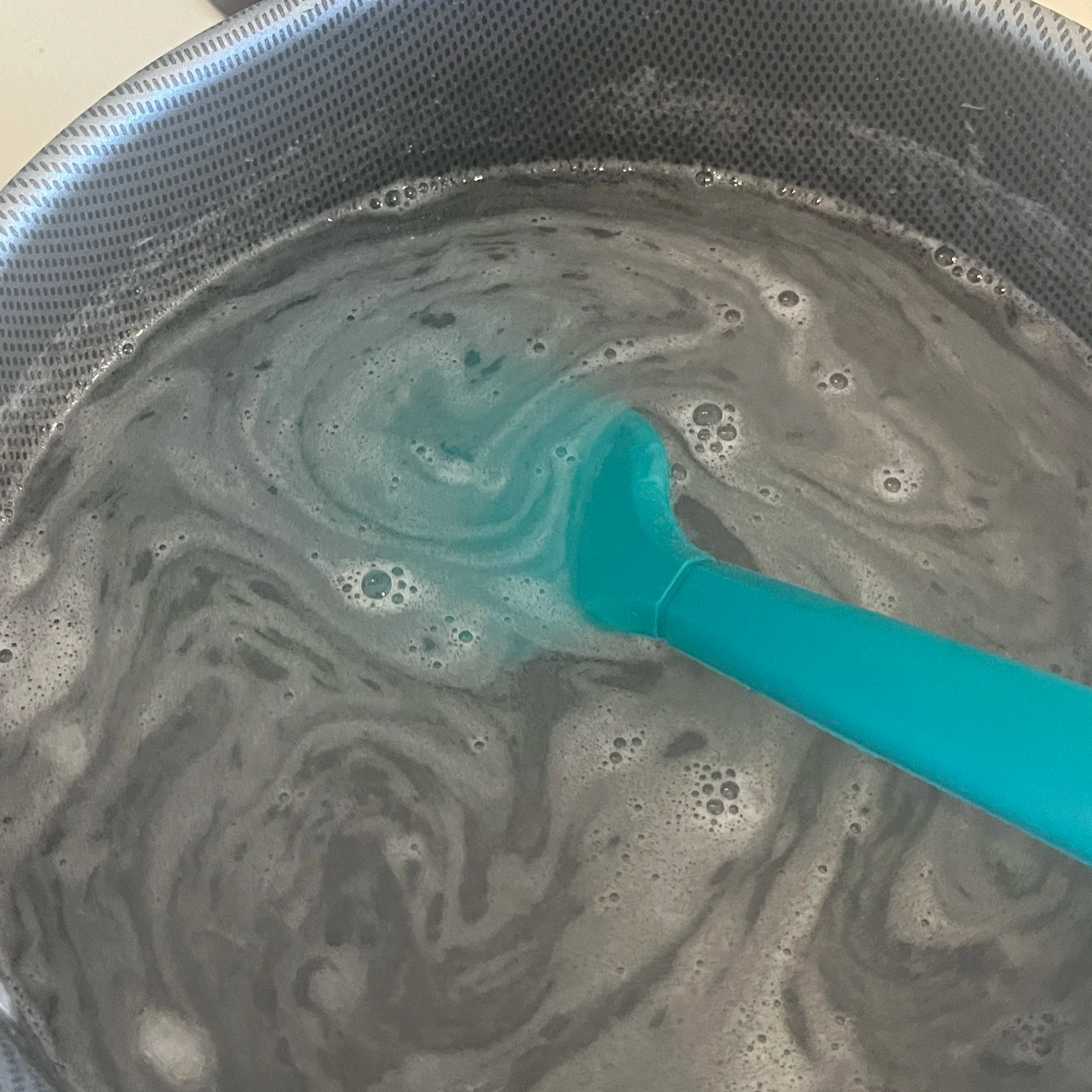 Pour water, vegetable glycerin, and vinegar into the pot. Use the spatula to stir gently and combine all ingredients.