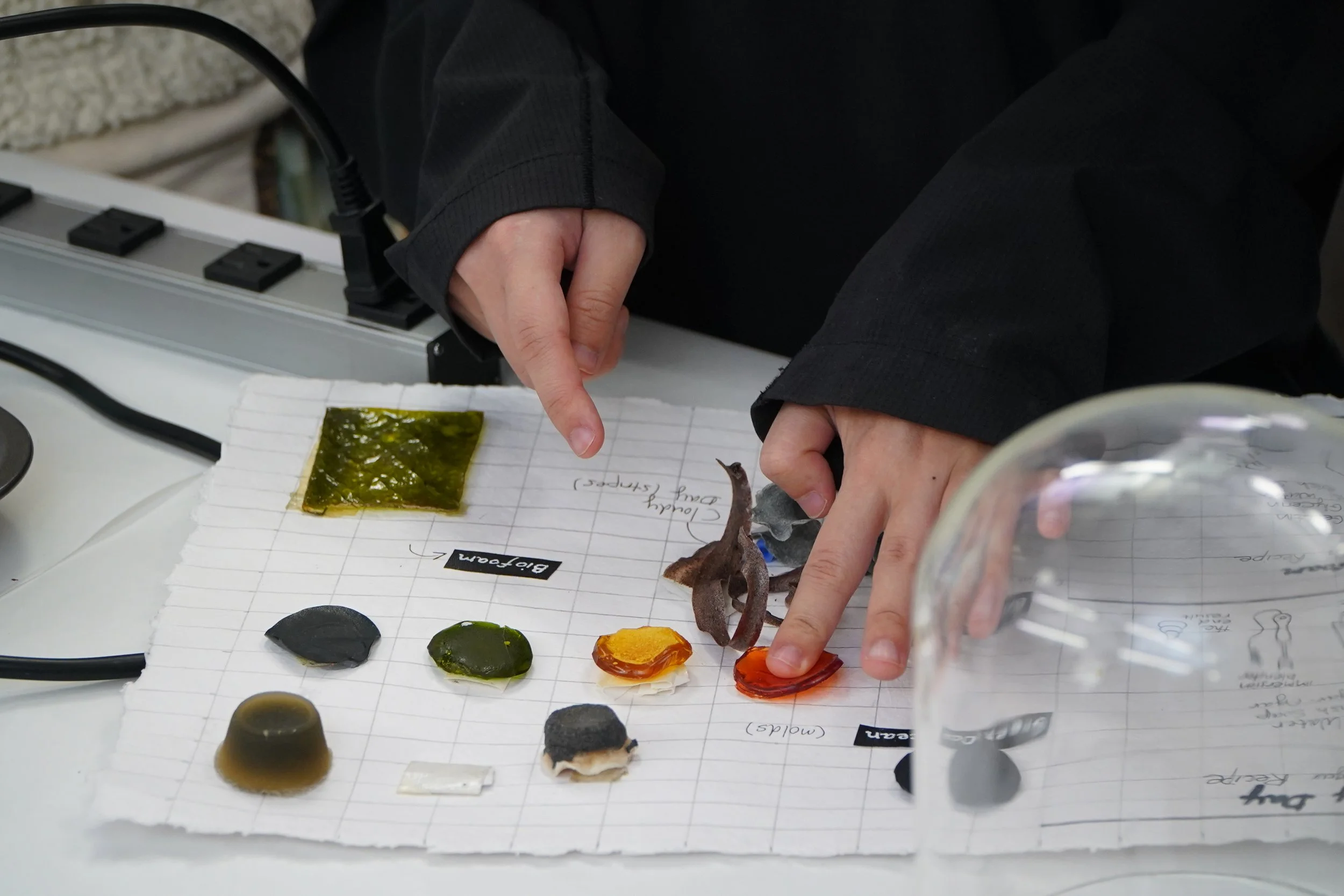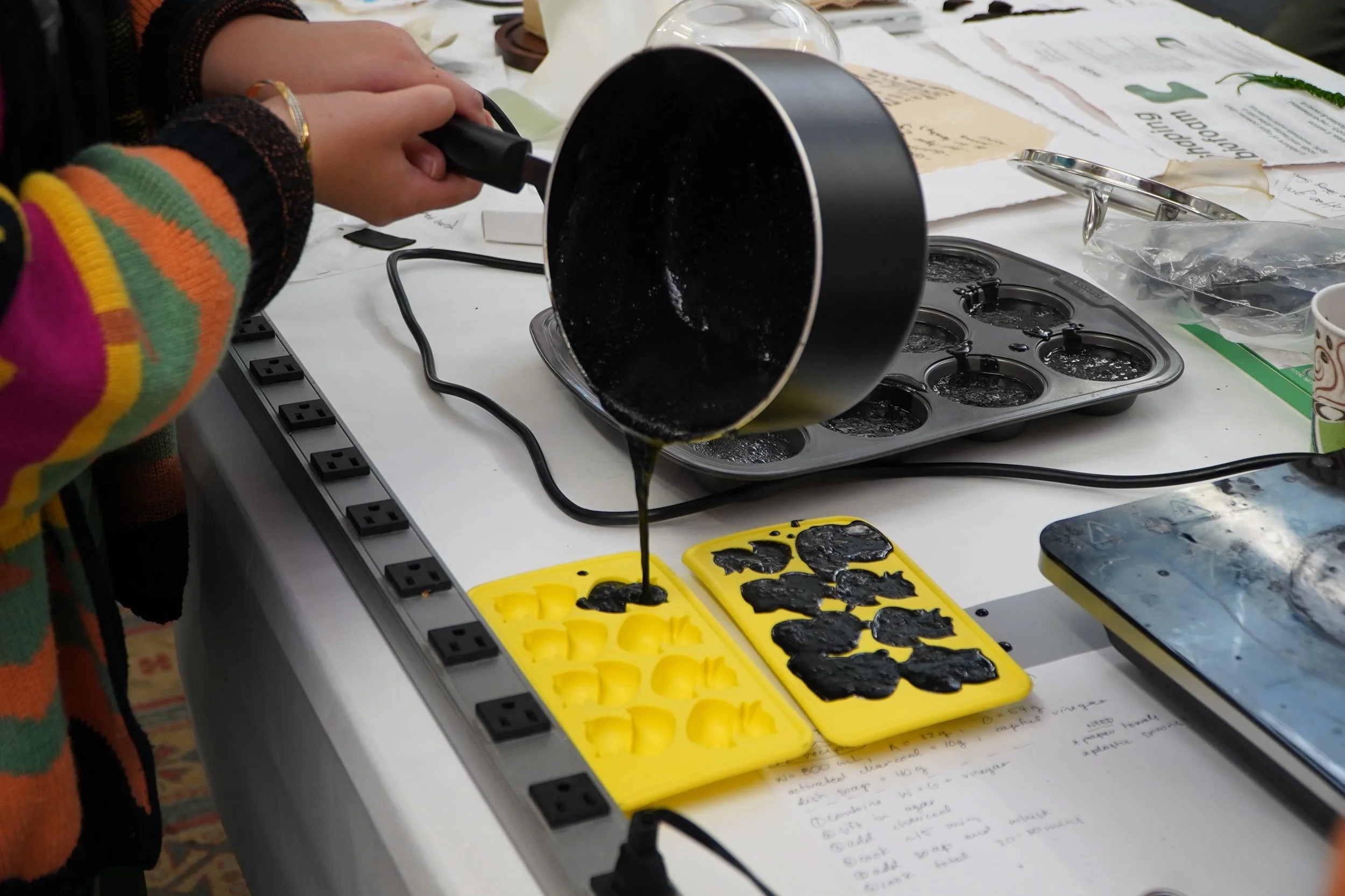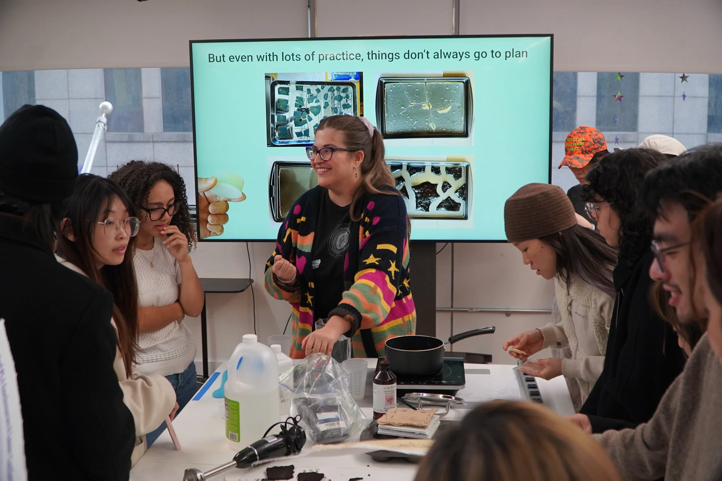 This workshop at ITP consisted of us talking about our most recent research developing a conductive biomaterial, showing off examples of our past work, and then a live cooking demo of an activated charcoal biofoam. Below are some great moments captured by the fabulous Lily Crandall.